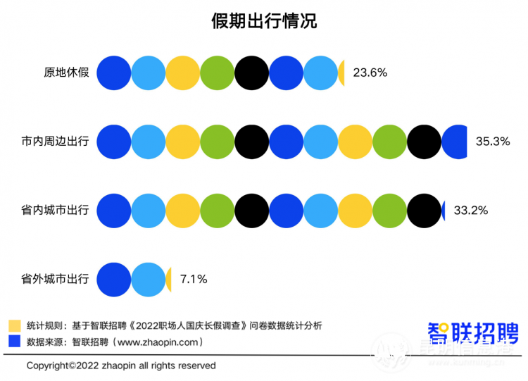 剛剛過去的國慶假期,受訪職場(chǎng)人僅有23.6%選擇原地休假。市內(nèi)周邊出行、省內(nèi)城市出行以35.3%、33.2%的比例成為職場(chǎng)人休假首選。調(diào)研數(shù)據(jù)顯示,這個(gè)假期30.5%的00后存款“哐哐”往下掉,縮水很大,而80后有錢有閑最顧家。