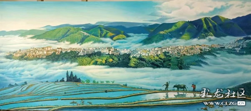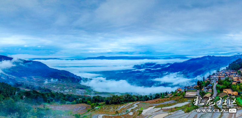 《撒馬壩云海里的龍瑪村》