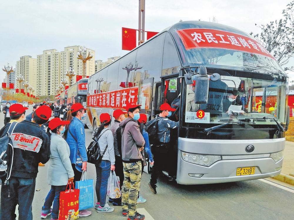 魯?shù)榭h卯家灣易地扶貧搬遷安置區(qū)群眾集中外出務(wù)工。記者 沈迅 攝