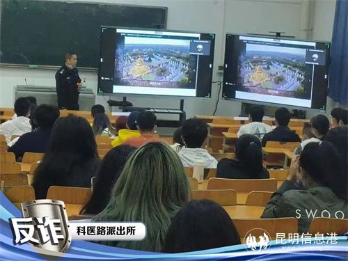 科醫(yī)路派出所新域警務區(qū)社區(qū)民警楊占宏主動對接昆明城市學院保衛(wèi)、學工部門,采用“線上直播、線下課堂”聯(lián)動的講課方式,對學院師生開展了反電詐安全講座。民警對同學們語重心長地說,“這些騙術雖然看起來讓人眼花繚亂,五花八門,但其實都是緊扣人的欲望來下套,只要牢記‘個人信息不泄露、陌生網(wǎng)址不點擊、不聽不信不轉賬,不貪不怕不上當’的四大反詐訣竅,就不會輕易被騙。”