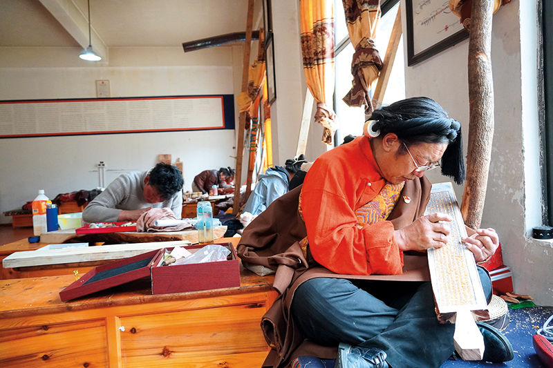 “以前除了種地、養(yǎng)牛,沒想過干其他的。這兩年學(xué)習(xí)木刻,每月有4000多元的收入?!蓖鉀_村村民白瑪加村說,自己在用雙手雕刻著幸福生活。