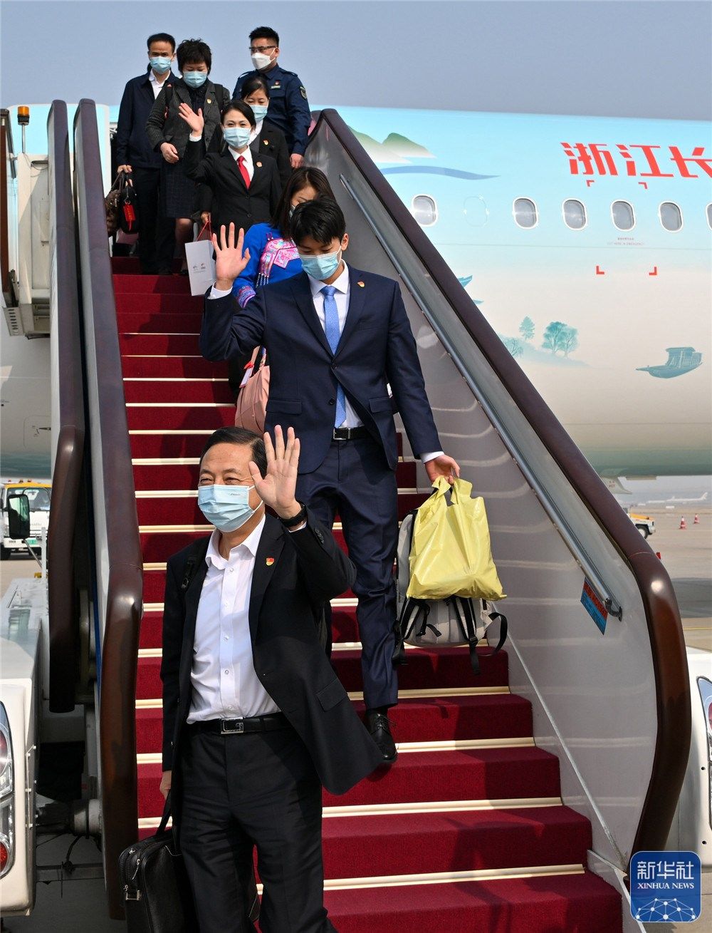 10月14日,來(lái)自浙江省的黨的二十大代表乘飛機(jī)抵達(dá)北京首都國(guó)際機(jī)場(chǎng)。新華社記者 陳益宸 攝
