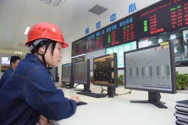 別看已經入秋,但華能海門電廠車間里的溫度近 42 ℃,伴隨著機器的轟鳴聲,紀潔虹手握一個黑色手電筒,挨個機器認真巡查,顧不上抬手抹掉額角的汗。