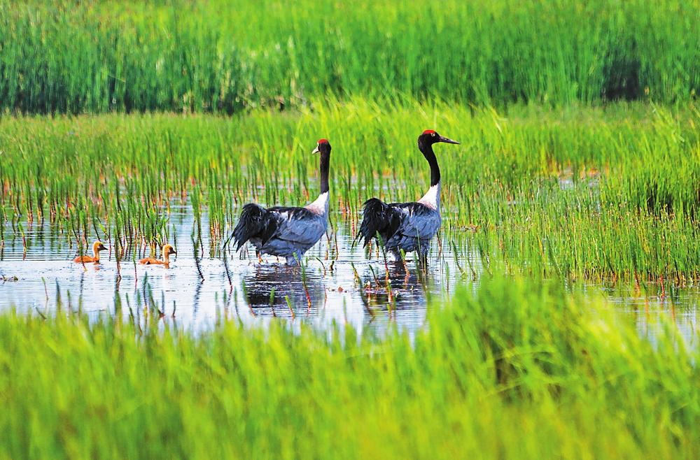 黑頸鶴選擇青海湖,青海湖選擇黑頸鶴,這種雙向奔赴一方面是黑頸鶴生活習(xí)性使然,另一方面則是青海湖生態(tài)環(huán)境可以讓黑頸鶴安心安家。