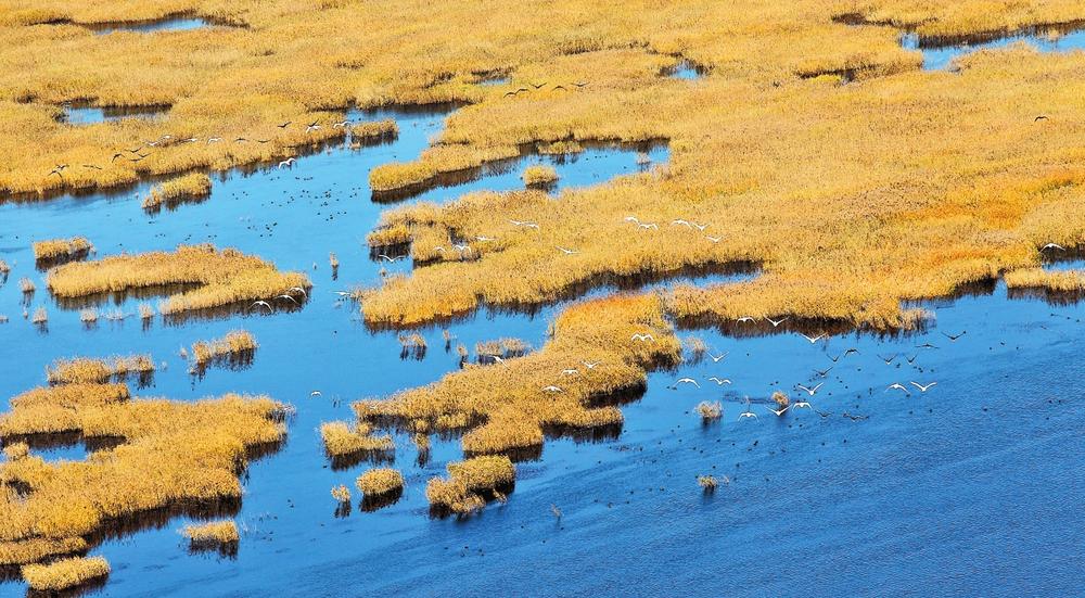 為了更好地讓鳥類留下來(lái),保護(hù)區(qū)還先后實(shí)施東方白鸛、黑嘴鷗、鶴類等關(guān)鍵物種棲息地保護(hù),以及檉柳、野大豆等原生植物保育和水生生物恢復(fù)等工程,生物多樣性逐步提高,也讓越來(lái)越多的鳥類在此安家。目前,自然保護(hù)區(qū)野生植被資源豐富,野生植物411種,野生動(dòng)物1630種,鳥類由建區(qū)之初的187種增至現(xiàn)在的371種。