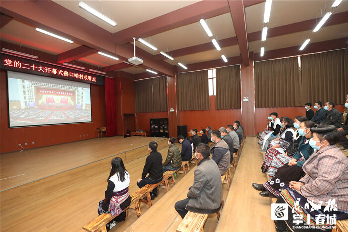尋甸縣七星鎮(zhèn)魯口哨村群眾收看黨的二十大開幕會直播。記者李海曦攝