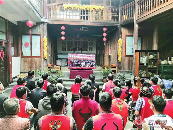 10月16日,臨滄市滄源佤族自治縣干部群眾和工程項(xiàng)目建設(shè)者共同收看黨的二十大開幕會。通訊員攝