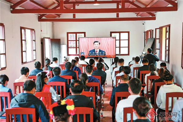 百年榕樹枝繁葉茂,樹下一座寫有“心向總書記、心向黨、心向國家”大字的建筑格外引人注目;“建設(shè)好美麗家園、維護(hù)好民族團(tuán)結(jié)、守護(hù)好神圣國土”,殷殷囑托格外振奮人心。10月16日上午10時,臨滄市滄源佤族自治縣班洪鄉(xiāng)下班壩自然村,曾宣讀習(xí)近平總書記重要回信的感恩紀(jì)念廣場上,滄源100多名干部群眾共同收看黨的二十大開幕會盛況。