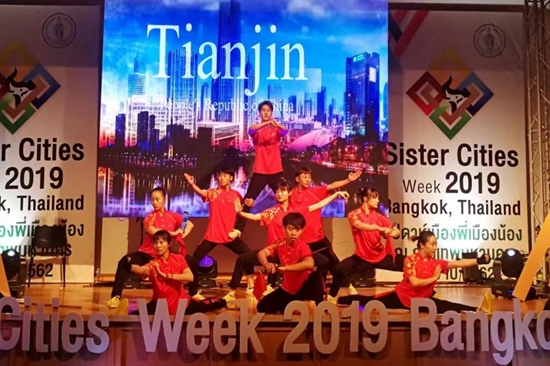 2019年6月27日至7月1日,天津理工大學(xué)武術(shù)隊(duì)亮相泰國(guó)曼谷“2019友好城市周”活動(dòng)。天津理工大學(xué)供圖