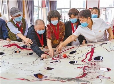 黨員在內(nèi)蒙古呼和浩特市玉泉區(qū)鄂爾多斯路街道社區(qū)服務中心學習紅軍長征史。丁根厚攝(影像中國)