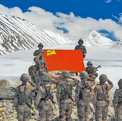 西藏阿里軍分區(qū)某邊防團巡邏官兵面向黨旗莊嚴宣誓。劉曉東攝(影像中國)