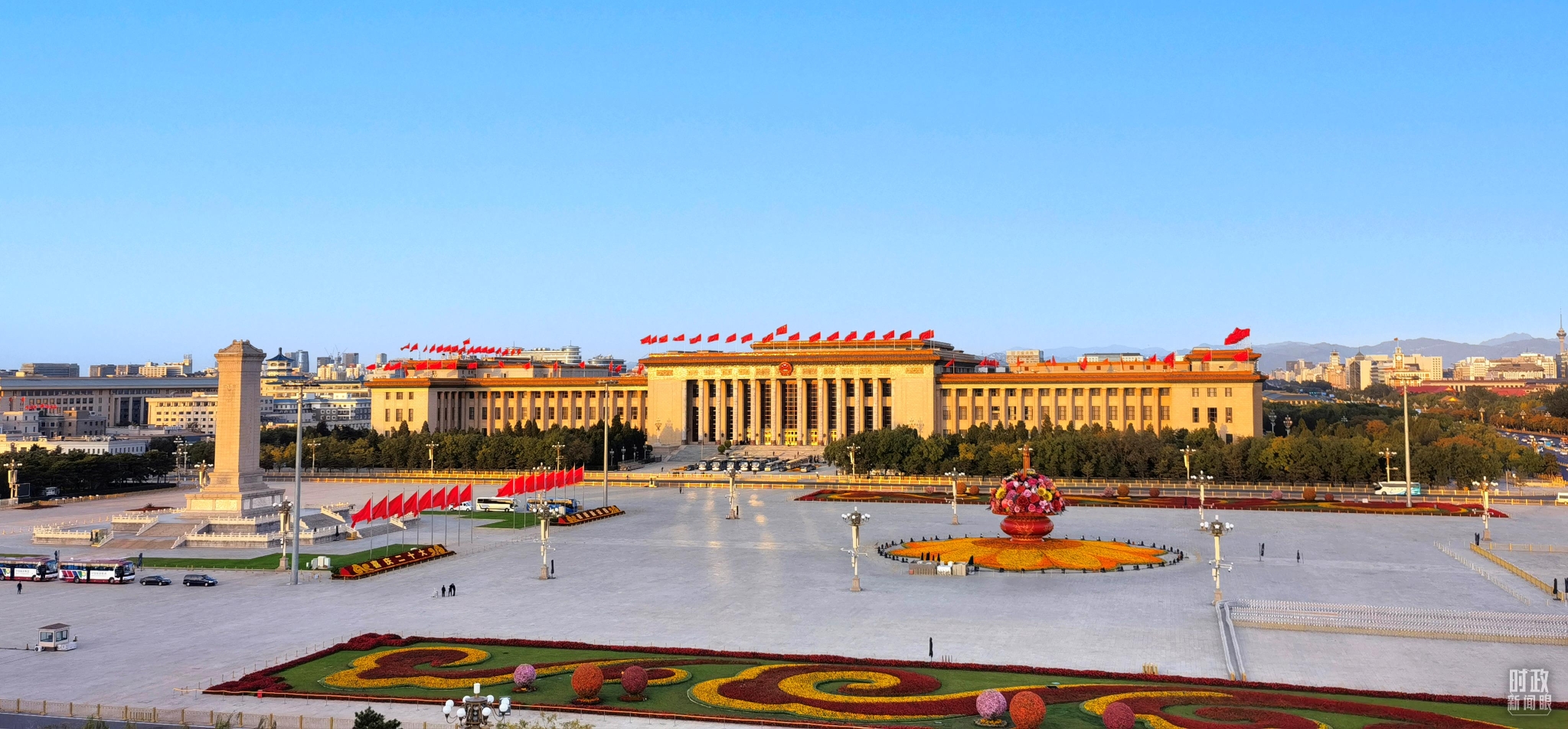 △16日清晨的天安門(mén)廣場(chǎng)。(總臺(tái)央視記者范學(xué)禹拍攝)