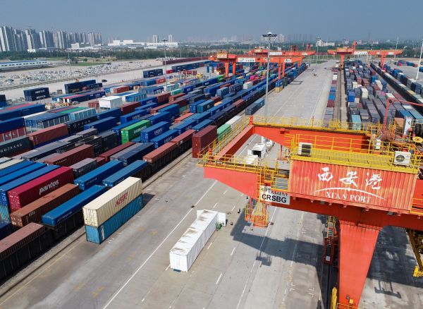 這是7月29日拍攝的西安國(guó)際港站。自2013年開(kāi)行以來(lái),從陜西西安始發(fā)的中歐班列長(zhǎng)安號(hào)不斷提速、擴(kuò)線,逐步成為內(nèi)陸地區(qū)效率高、成本低、服務(wù)優(yōu)的國(guó)際貿(mào)易通道。(張博文 攝)