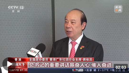 香港汕頭社團總會主席 高佩璇:我今天非常振奮,認真聽了習總書記的重要講話,增強了對國家未來發(fā)展的信心,也增強了對香港明天會更好的信心。