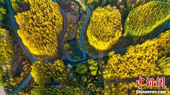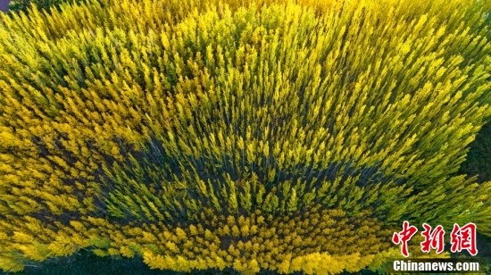 10月16日,甘肅張掖蘆水灣旅游度假區(qū)秋景如畫。張掖蘆水灣旅游度假區(qū)現(xiàn)為國(guó)家4A級(jí)景區(qū)、省級(jí)旅游度假區(qū)。 中新社發(fā) 成 林 攝 (無人機(jī)照片) 圖片來源:CNSphoto