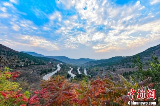 10月15日,金秋時(shí)節(jié),山東省青州市廟子鎮(zhèn)山坡上紅葉漫山遍野,成為秋日里一道美景。 中新社發(fā) 王繼林 攝 圖片來源:CNSphoto