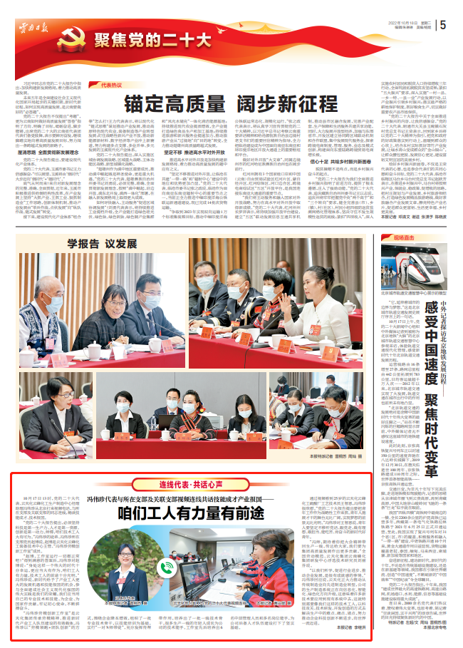 10月17日13時(shí),黨的二十大代表、云天化云峰化工生產(chǎn)制造中心經(jīng)理助理馮偉珍從北京打來視頻電話,與所在支部及關(guān)聯(lián)支部的同志連線,暢談技能成才、技術(shù)報(bào)國。