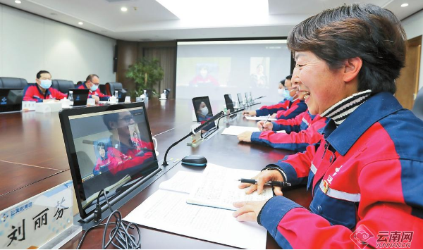云天化部分職工與黨的二十大代表視頻連線。云南網(wǎng) 記者黃興能/攝