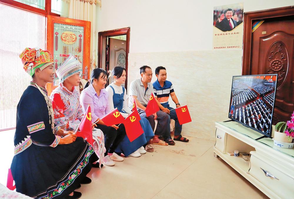 文山市德厚鎮(zhèn)樂西村村民收看開幕會直播