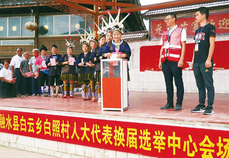 選舉人大代表,是人民代表大會制度的基礎(chǔ),是人民當家作主的重要體現(xiàn)。圖為2021年7月22日,廣西柳州市融水苗族自治縣白云鄉(xiāng)群眾進行縣、鄉(xiāng)兩級人大代表換屆選舉?!∏笫菆D片 龍濤/攝