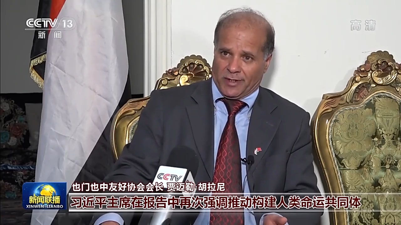 也門也中友好協(xié)會會長 賈邁勒·胡拉尼:習(xí)近平主席在報告中再次強調(diào)推動構(gòu)建人類命運共同體,并指出和平、發(fā)展、合作、共贏是人心所向,這為未來的國際合作提供了指引。中國已成為全球經(jīng)濟增長的重要穩(wěn)定因素和力量源泉,中國在發(fā)展自身經(jīng)濟的同時也在謀求世界的共同發(fā)展,聚焦互利共贏。(央視新聞)