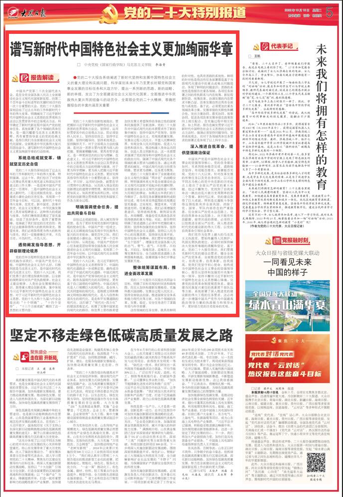 十大精神,大會召開期間,大眾日報特邀中央黨校(國家行政學院)專家學者圍繞二十大報告進行解讀,今天刊發(fā)第一篇——《譜寫新時代中國特色社會主義更加絢麗華章》。敬請關注。