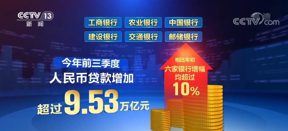 工商銀行、農(nóng)業(yè)銀行、中國銀行、建設(shè)銀行、交通銀行、郵儲銀行發(fā)布的最新公告顯示,今年前三季度六大銀行人民幣貸款增加超過9.53萬億元,相比年初,六家銀行增幅均超過10%。