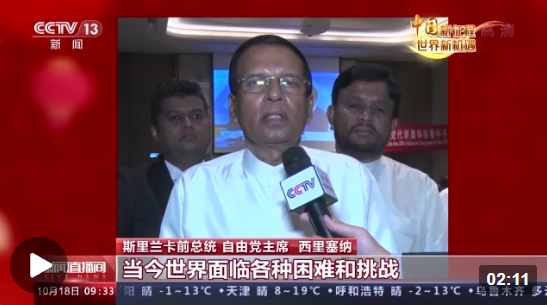 斯里蘭卡前總統(tǒng) 自由黨主席 西里塞納:當(dāng)今世界面臨各種困難和挑戰(zhàn),但即使是在當(dāng)前這一背景下,我們?nèi)匀粓?jiān)信中國共產(chǎn)黨一定能夠帶領(lǐng)中國人民實(shí)現(xiàn)這一偉大目標(biāo)。