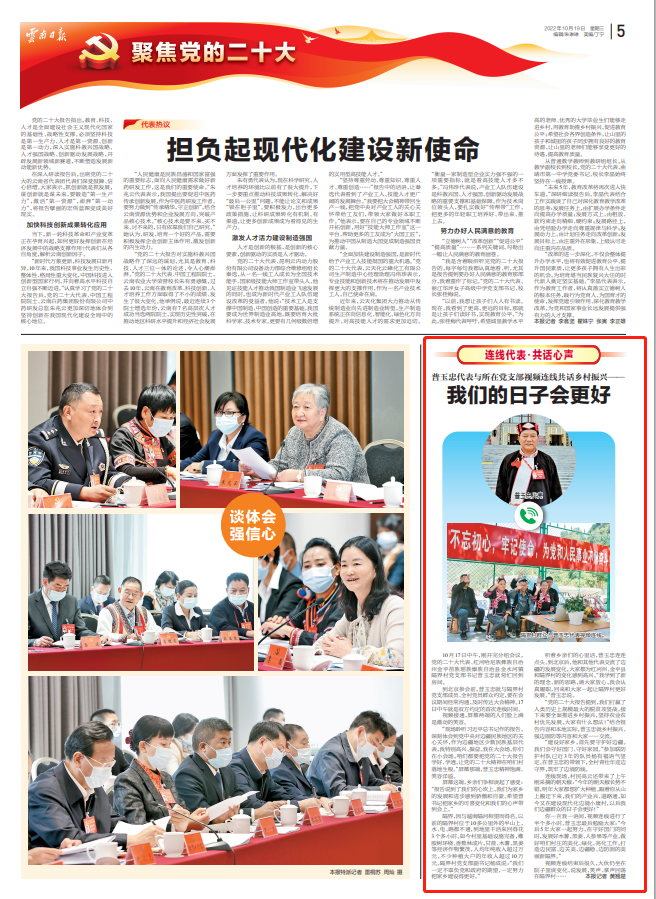 “現(xiàn)場聆聽習(xí)近平總書記作的報(bào)告,深刻體會(huì)到黨中央對(duì)邊疆民族地區(qū)的關(guān)心關(guān)懷,作為邊疆地區(qū)少數(shù)民族基層代表,我特別高興、振奮。我在大會(huì)場,你們?cè)谛?huì)場,咱們都要把黨的二十大報(bào)告學(xué)好、學(xué)透,讓黨的二十大精神在咱們村落地生根?!逼聊荒嵌?,普玉忠精神飽滿、笑容洋溢。