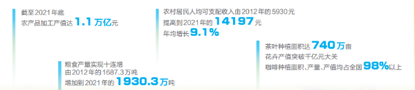 鄉(xiāng)村產(chǎn)業(yè)興旺,家園美麗宜居,農(nóng)民幸福安康,一幅紅紅火火的農(nóng)業(yè)農(nóng)村現(xiàn)代化圖景在云嶺鋪展。黨的十八大以來的十年,云南農(nóng)業(yè)迎來了高速發(fā)展的“黃金十年”。