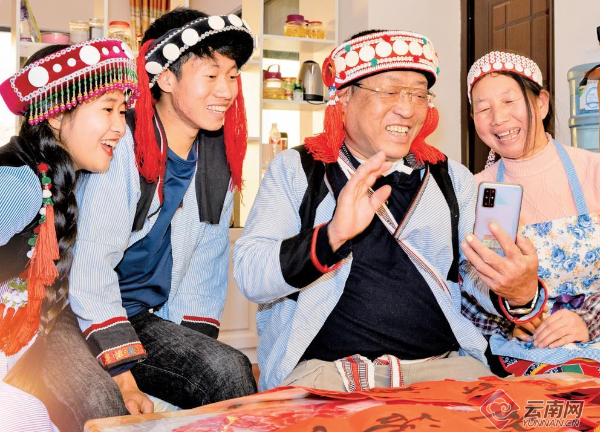 云南省瀘水市和諧社區(qū)居民開干益以微信視頻方式向在廣東務(wù)工的女兒送去新年祝福。通訊員 高玉生 攝