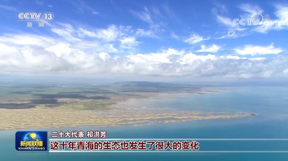 在青海展區(qū),祁洪芳代表在一幅照片前久久不愿離開,這幅照片上是她工作了30年的地方——青海湖。
