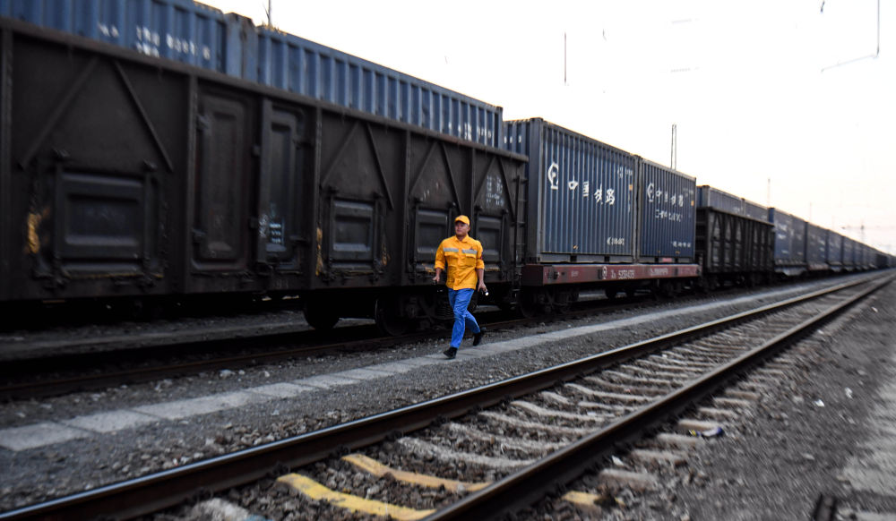 10月16日,在中國(guó)鐵路南寧局集團(tuán)有限公司欽州港站,檢車工長(zhǎng)林江波走在去接班的路上。新華社記者 張愛林 攝