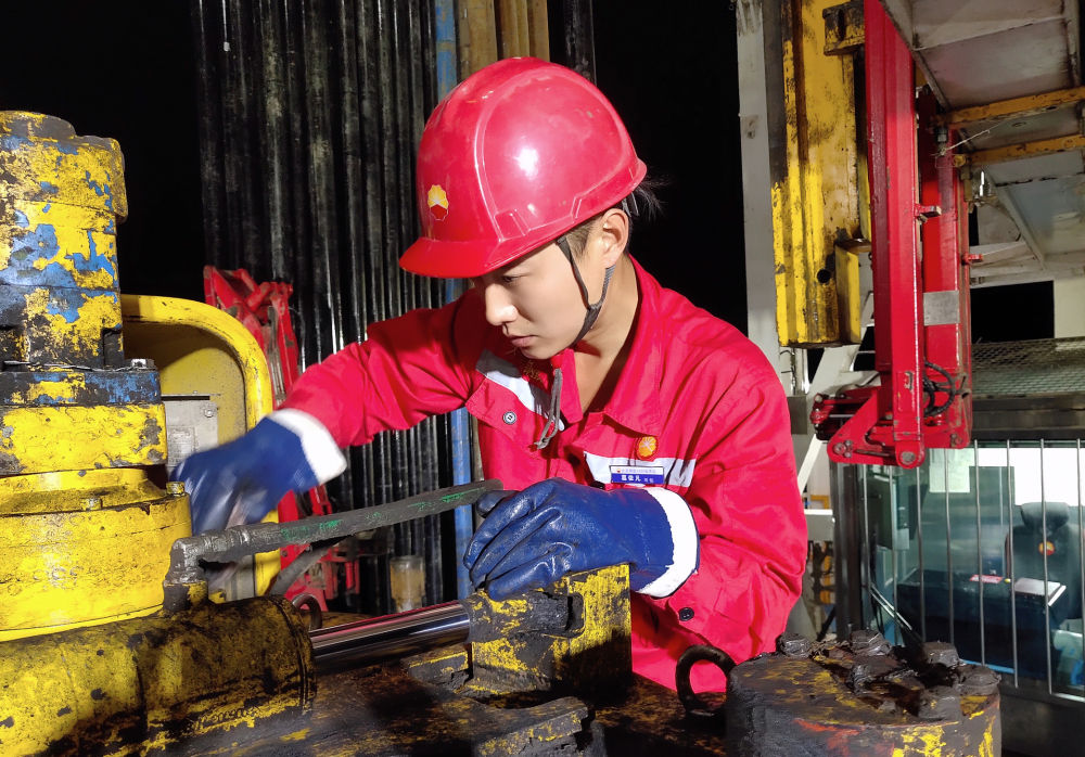 10月17日,黑龍江大慶油田1205鉆井隊(duì)青年員工葛依凡在作業(yè)中。新華社發(fā)(段永堅(jiān) 攝)