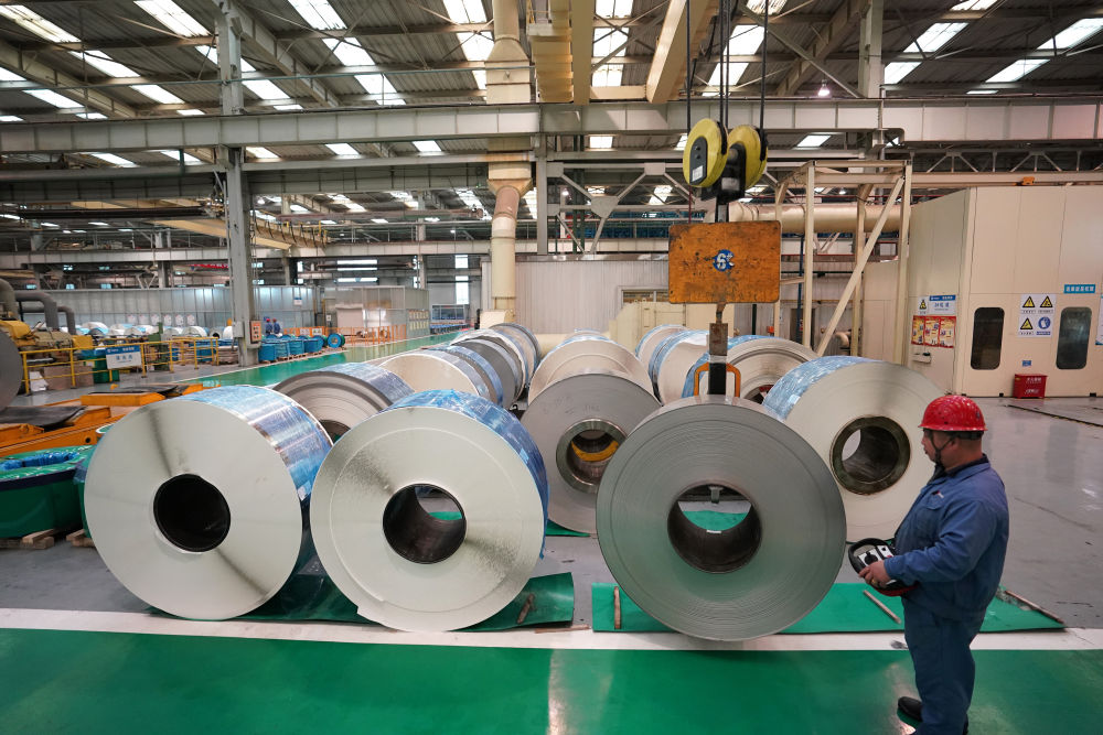 中國(guó)寶武山西太鋼不銹鋼精密帶鋼有限公司生產(chǎn)車間一角(10月16日攝)。新華社記者 詹彥 攝