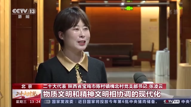 二十大代表 陜西省寶雞市陳村鎮(zhèn)槐北村黨支部書記 張凌云:就在我來開會之前,我們村70多歲的老黨員找到了我,說,閨女啊,咱們村能不能建一個文化大舞臺,我想現(xiàn)在大家富裕了,生活水平提高了,就需要一些精神上的需求了。二十大報告明確指出,中國式現(xiàn)代化是物質(zhì)文明和精神文明相協(xié)調(diào)的現(xiàn)代化。下一步,我們的目標更明確了,文化大舞臺正在路上。