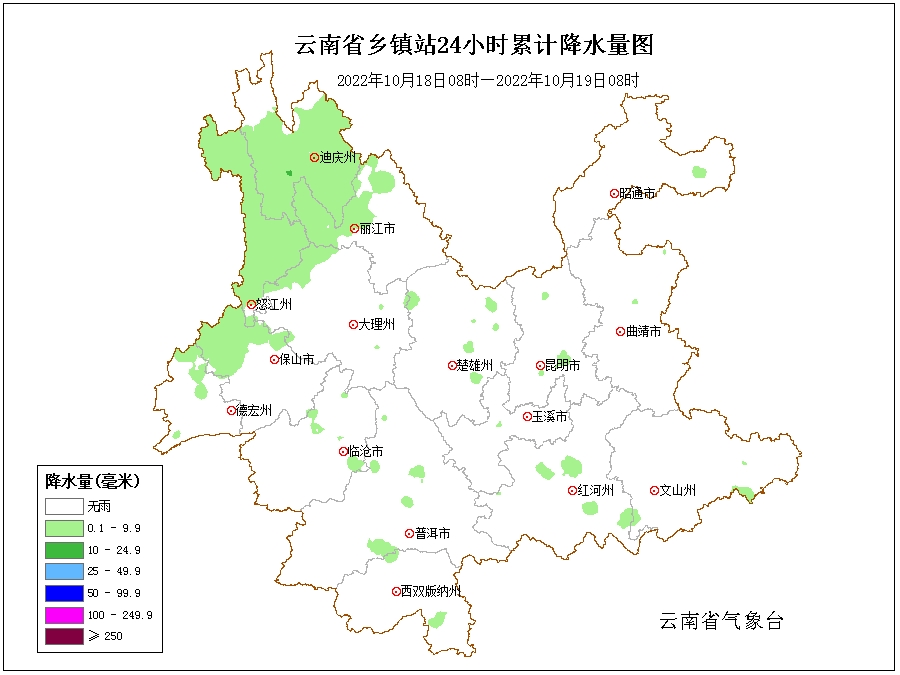 10月18日,迪慶、怒江、麗江西部、大理西部、保山西部、德宏西部出現(xiàn)小雨局部中雨。