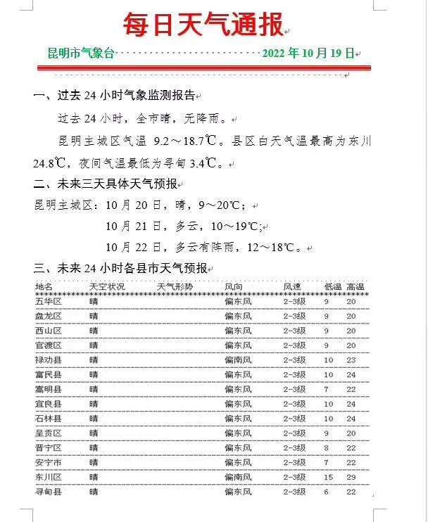 未來(lái)三天,昆明主城區(qū)具體天氣預(yù)報(bào):