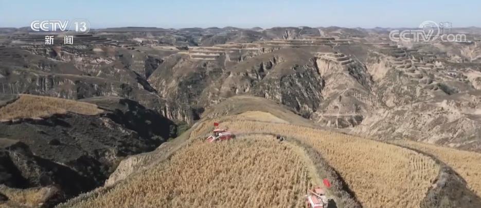 在米脂縣萬(wàn)畝高標(biāo)準(zhǔn)農(nóng)田里,收割機(jī)在谷田里來(lái)回穿梭,保證顆粒歸倉(cāng)。今年,當(dāng)?shù)赜晁渑?,谷穗籽粒飽滿(mǎn)、長(zhǎng)勢(shì)喜人,預(yù)計(jì)今年谷子畝產(chǎn)將達(dá)到800斤,每畝較去年增收900到1000元。
