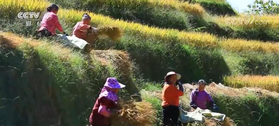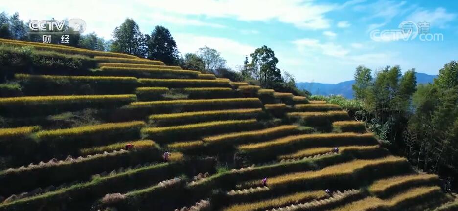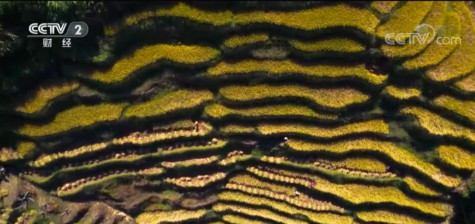 央視網(wǎng)消息:近日,江西省崇義縣上堡梯田5萬余畝水稻迎來豐收。在藍(lán)天白云的映襯下,金黃色的稻浪和獨(dú)特的梯田景觀交織成一幅和諧美麗的農(nóng)耕畫卷。