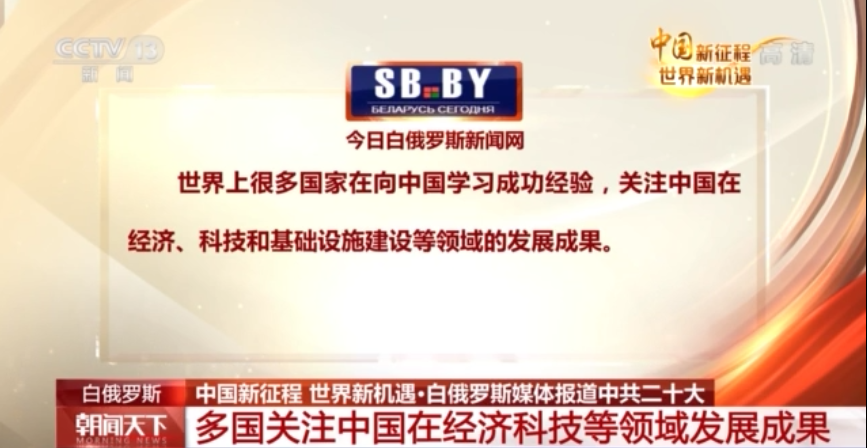 白俄羅斯首都電視頻道在直播節(jié)目中關(guān)注報道中共二十大,白俄羅斯專家馬采利表示,中共二十大的召開具有非凡意義。