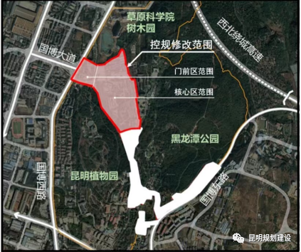 總體來看,此次調(diào)規(guī)主要涉及盤龍區(qū)國(guó)家植物博物館核心區(qū)以及門前區(qū),項(xiàng)目位于昆明植園東北側(cè)、黑龍?zhí)豆珗@西北側(cè)。原規(guī)劃中項(xiàng)目核心區(qū)均為文化設(shè)施用地,用地面積約17.14公頃(約257畝)。