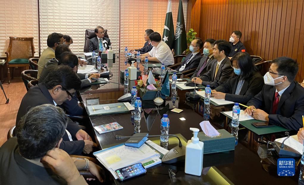 10月15日,中國政府防洪專家組在巴基斯坦南部信德省首府卡拉奇與巴方人員交流防災減災工作。新華社記者 姜江 攝