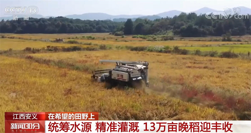 這幾天,江西南昌安義縣的13萬畝晚稻迎來收獲。雖然今年經(jīng)歷了旱情,但當(dāng)?shù)毓鄥^(qū)統(tǒng)籌各種水源對(duì)稻田進(jìn)行精準(zhǔn)灌溉,水稻仍然獲得豐收。
