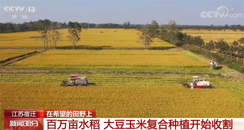 水稻開鐮收割的同時(shí),泗洪的大豆玉米帶狀復(fù)合種植迎來豐收。在泗洪縣金鎖鎮(zhèn),今年,玉米、大豆總種植面積在30000畝左右,其中大豆玉米帶狀復(fù)合種植在5000畝左右,目前全部進(jìn)入收割期,整體長勢(shì)良好。