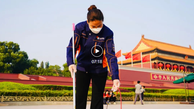 “天安門廣場是國家的臉面,不能有一丁點兒的不干凈。每天天不亮,我們把廣場清潔得每條磚縫都是干凈的,可以讓游客們放心地席地而坐?!边@是蔡鳳輝和同事們始終堅守的信念。
