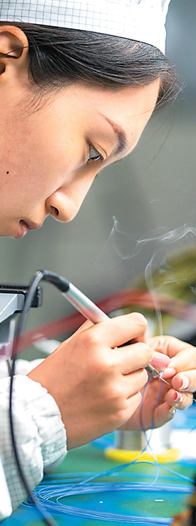 長(zhǎng)光衛(wèi)星技術(shù)股份有限公司電裝車間里,電裝操作員在制作電纜。 |
