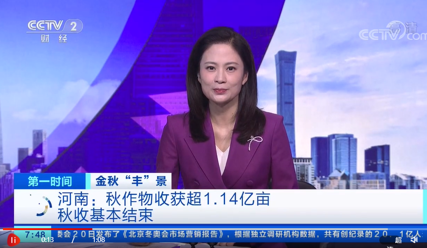 央視網(wǎng)消息:截至10月18日,河南省秋作物已收獲1.1477億畝,占種植面積的96.4%。除部分沿黃水稻和紅薯等晚茬作物外,河南省秋收基本結(jié)束。