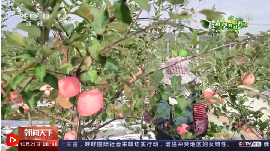 央視網(wǎng)消息:金秋十月,山東淄博沂源縣的32萬畝蘋果到了收獲的季節(jié)。色澤紅潤(rùn)、碩大飽滿的蘋果掛滿了枝頭,呈現(xiàn)出一派豐收的景象。
