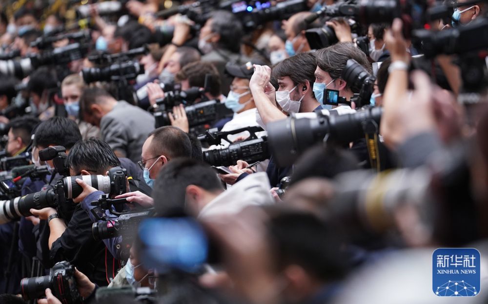 10月22日,中國(guó)共產(chǎn)黨第二十次全國(guó)代表大會(huì)閉幕會(huì)在北京人民大會(huì)堂舉行。這是記者在采訪拍攝。新華社記者 陳曄華 攝